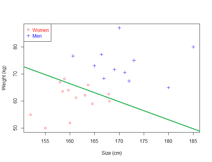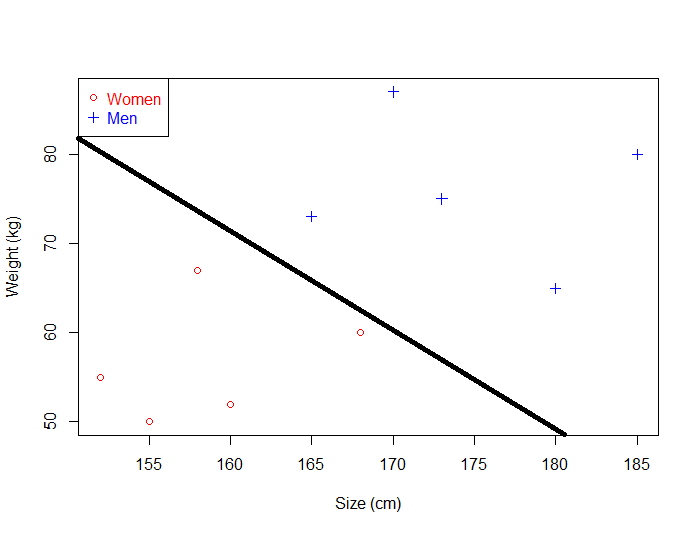 Given a particular data point (weight and size), is the person a man or a woman ?